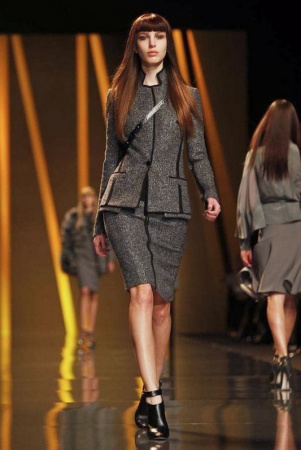 - Go for structured skirt or pants suits featuring tweed but also the more common materials.